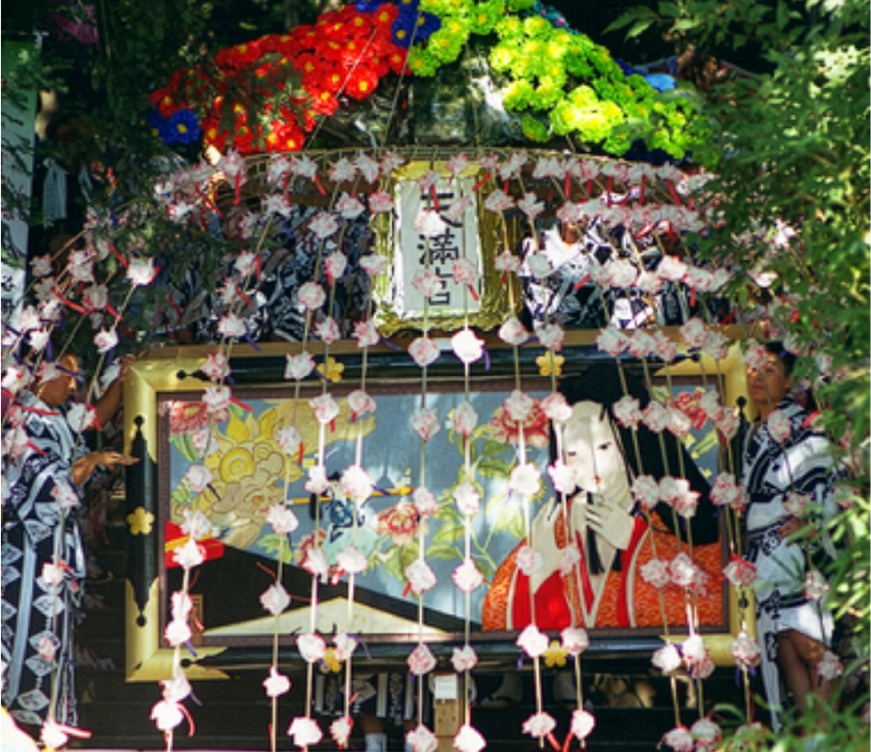 午後3時半より。市内の各町会から神輿が天満宮の境内に集結し宮司による御霊遷しの後一斉に発御。谷保駅前ロータリーまで渡御、休憩の後天満宮に還御。